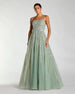 Softly shimmering and effortlessly ethereal, this strapless ball gown is designed to captivate. Intricate beading and sequins add a glamourous touch, while the flowing skirt creates a romantic, airy silhouette. Perfect for black tie galas, and special occasions.